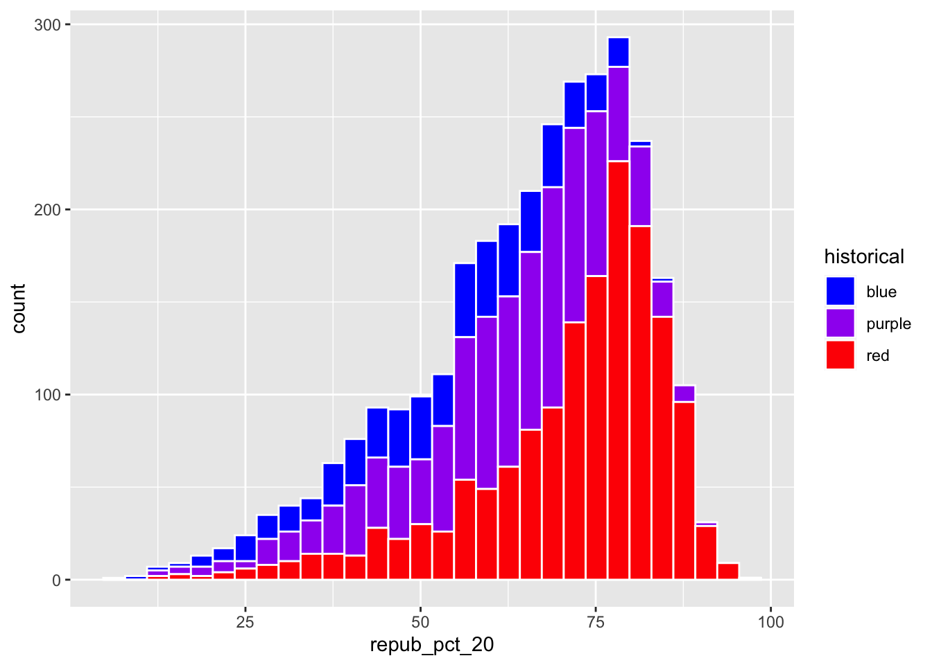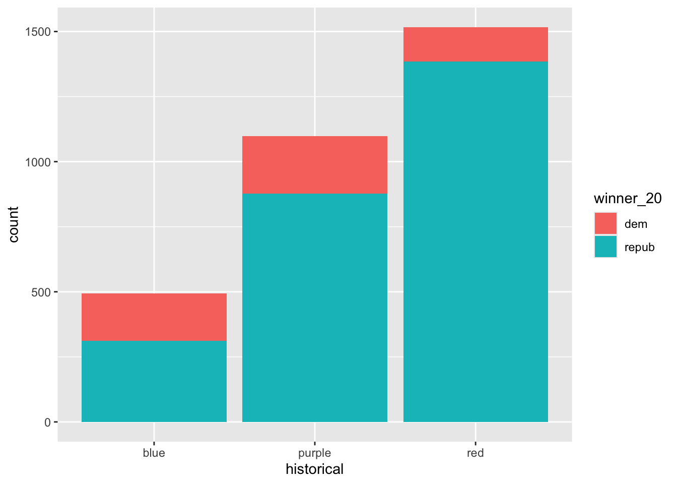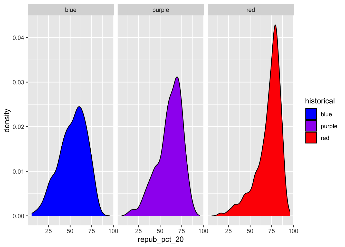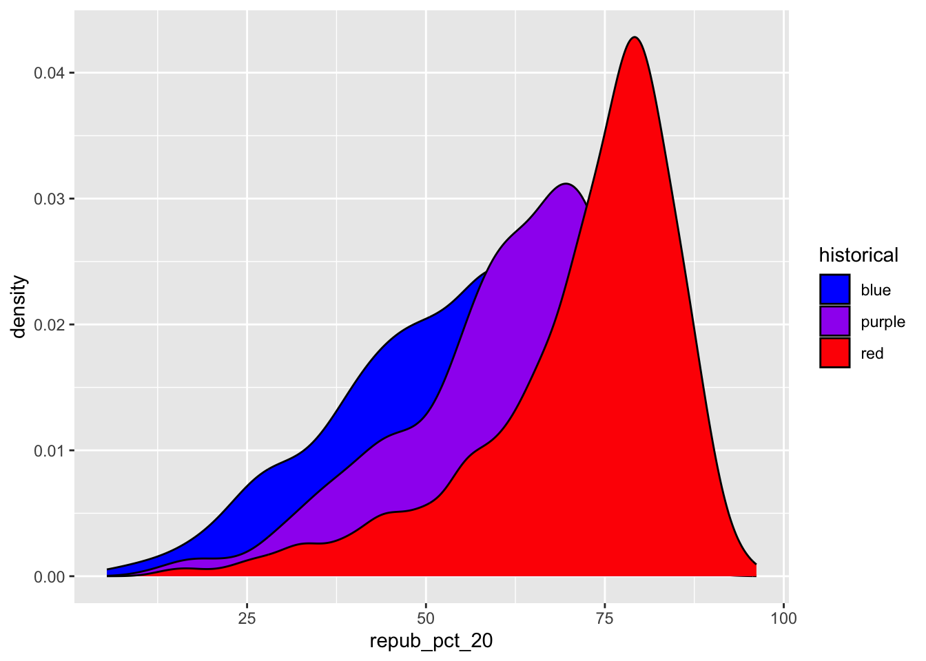 df_county_demographicsdata set within thechoroplethrR package - historical voting trends in the state in which the county falls. red = consistently Republican, blue = consistently Democratic, purple = something in between (from https://www.270towin.com/content/blue-and-red-states)
