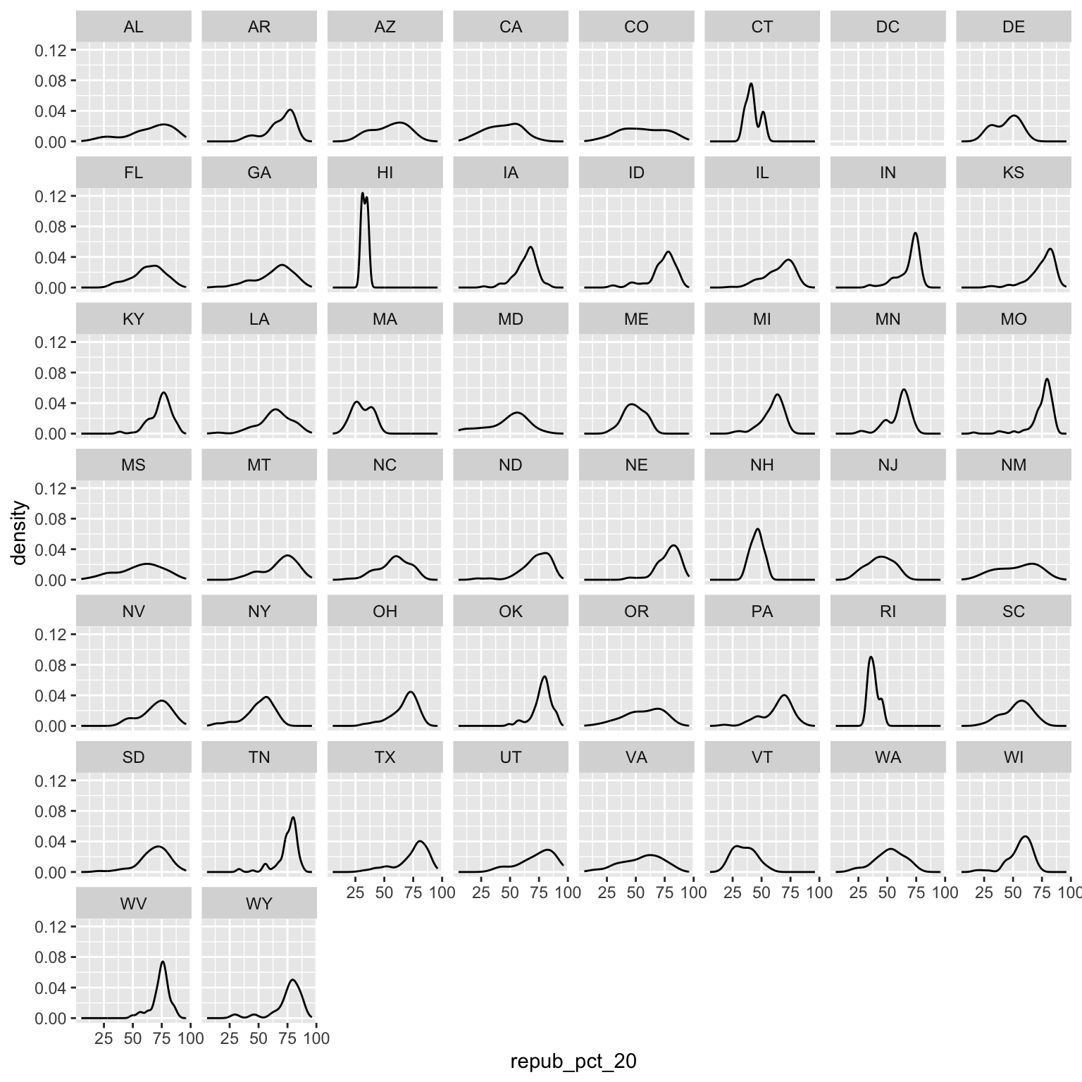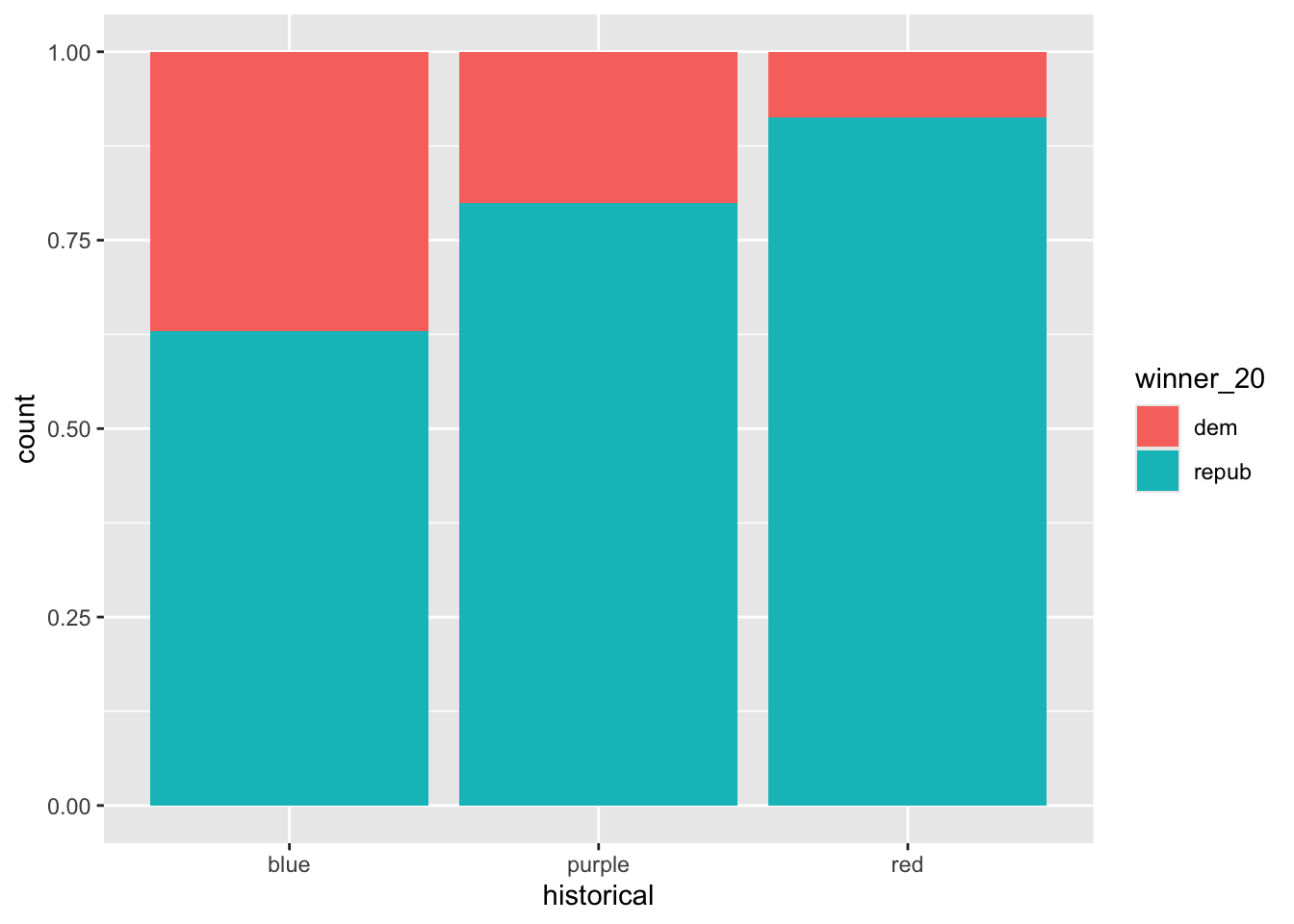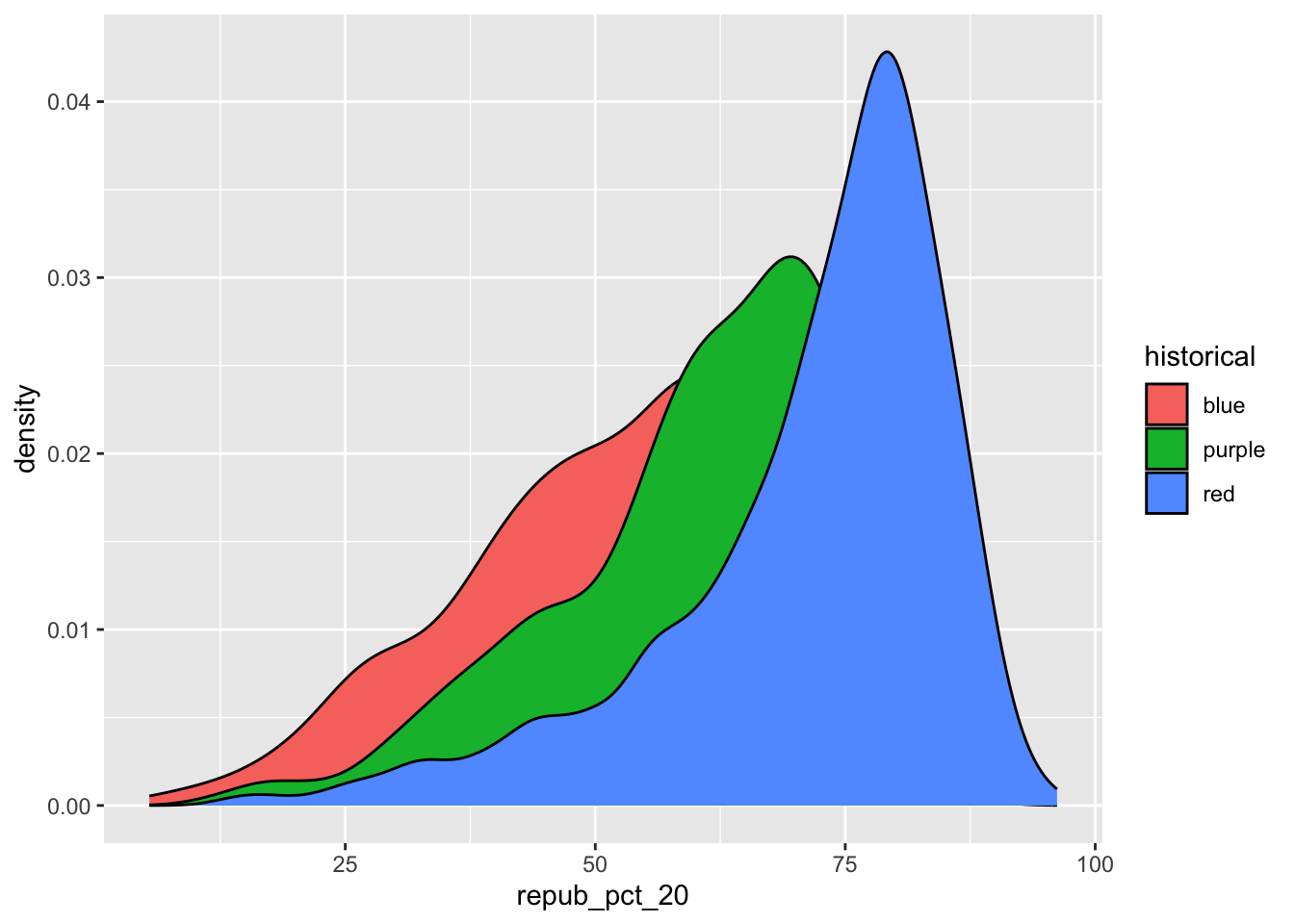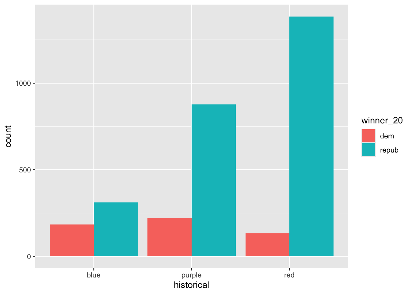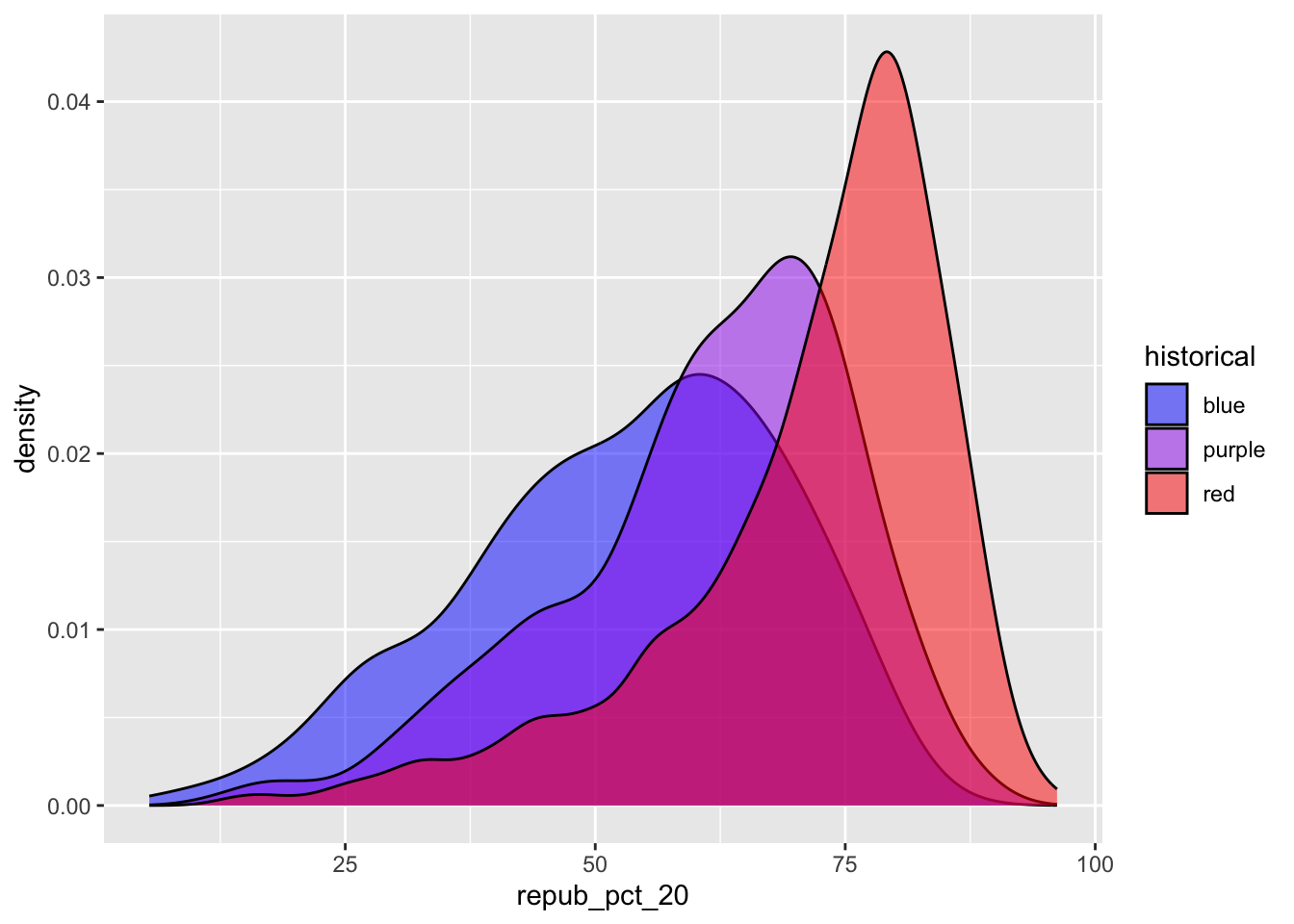 df_county_demographicsdata set within thechoroplethrR package - historical voting trends in the state in which the county falls. red = consistently Republican, blue = consistently Democratic, purple = something in between (from https://www.270towin.com/content/blue-and-red-states)
