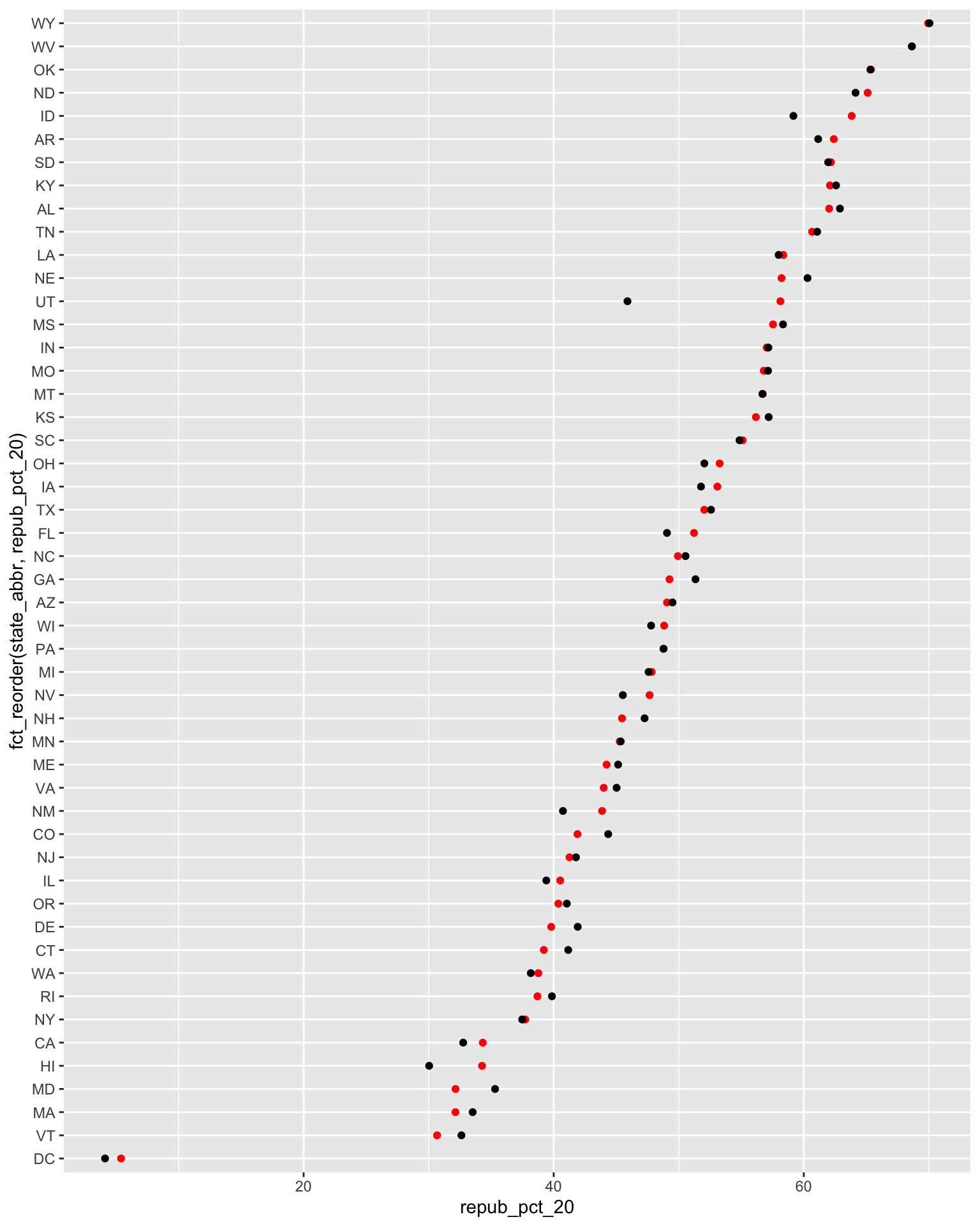 # Reorder the states in terms of their 2020 Republican support (not alphabet)