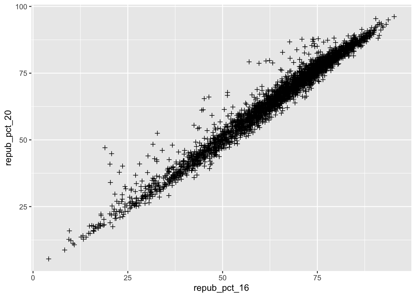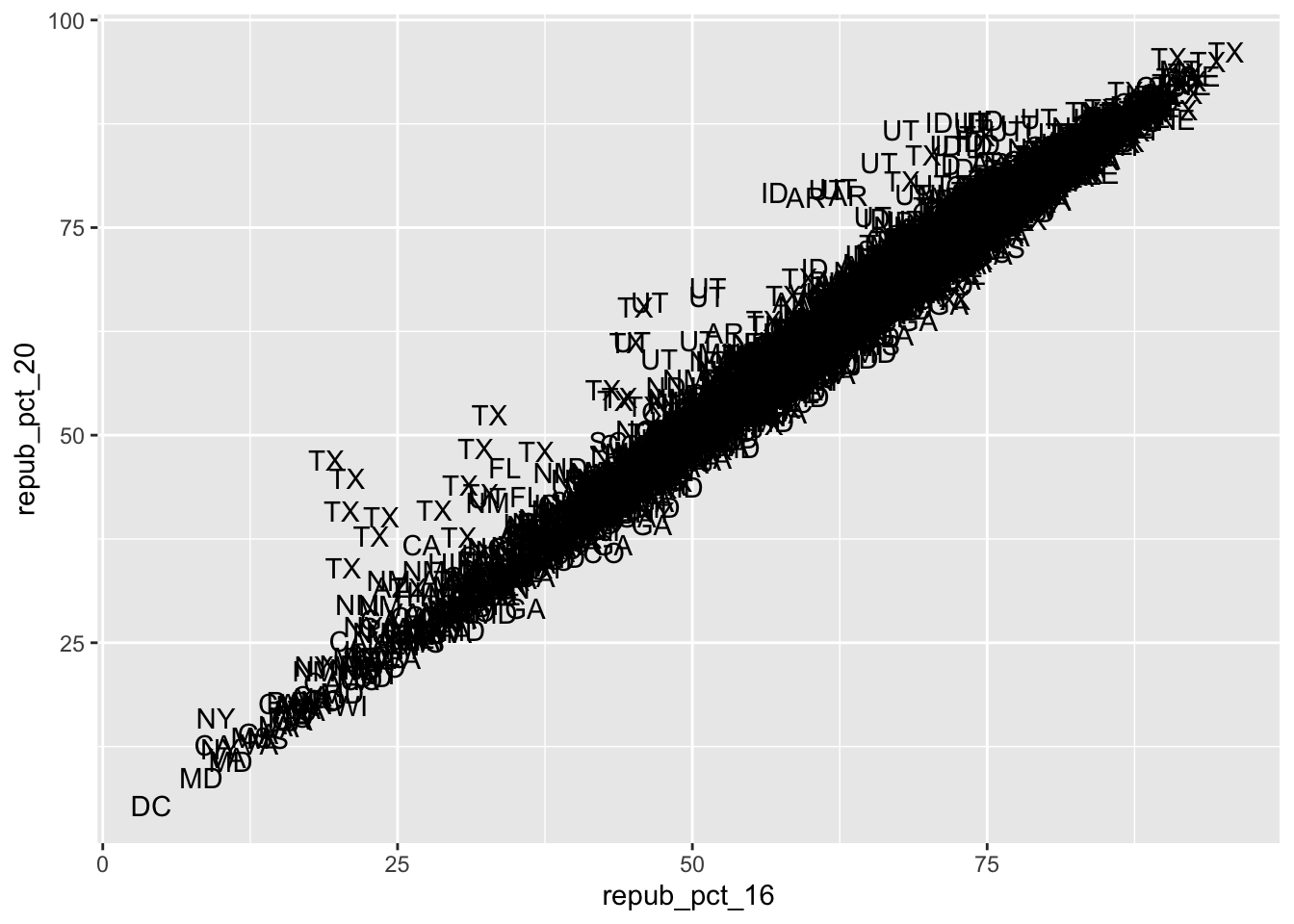 ggplot(elections, aes(y = repub_pct_20, x = repub_pct_16))