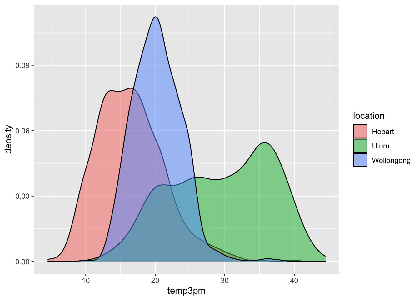 Think: How might we modify the below density plot of temp_3pm to distinguish between locations?