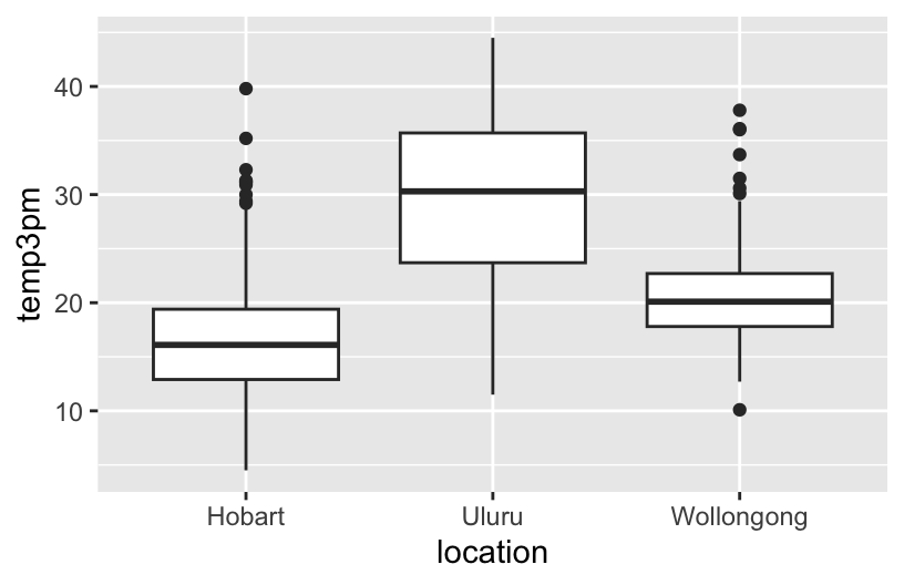 ggplot(weather, aes(y = temp3pm, x = location)) +
