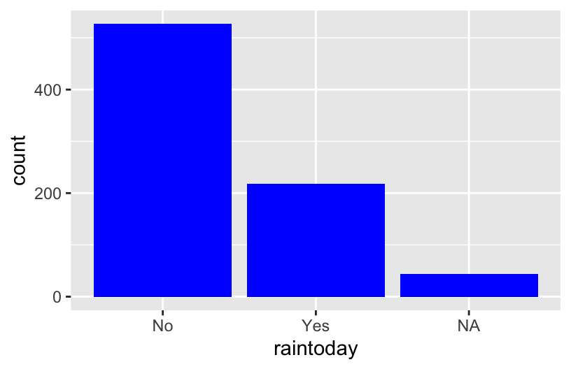 mutate(date = as.Date(date)) # How often does it raintoday?