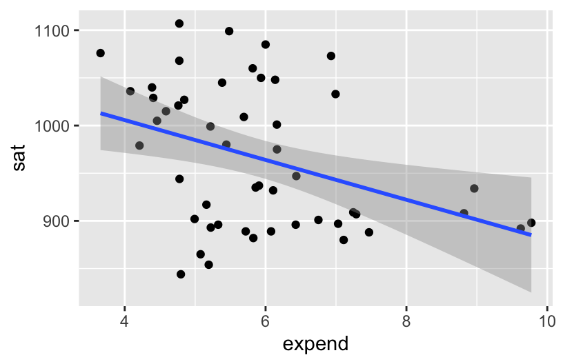 ggplot(education, aes(y = sat, x = expend)) +