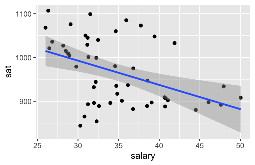 ggplot(education, aes(y = sat, x = salary)) +